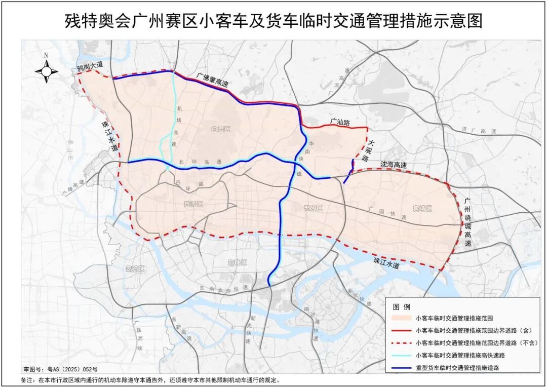 残特奥会期间(即2025年12月5日—14日)的临时交通管理区域如下: