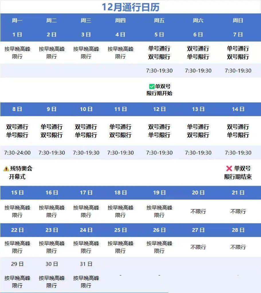 12月5-14号限行时间
