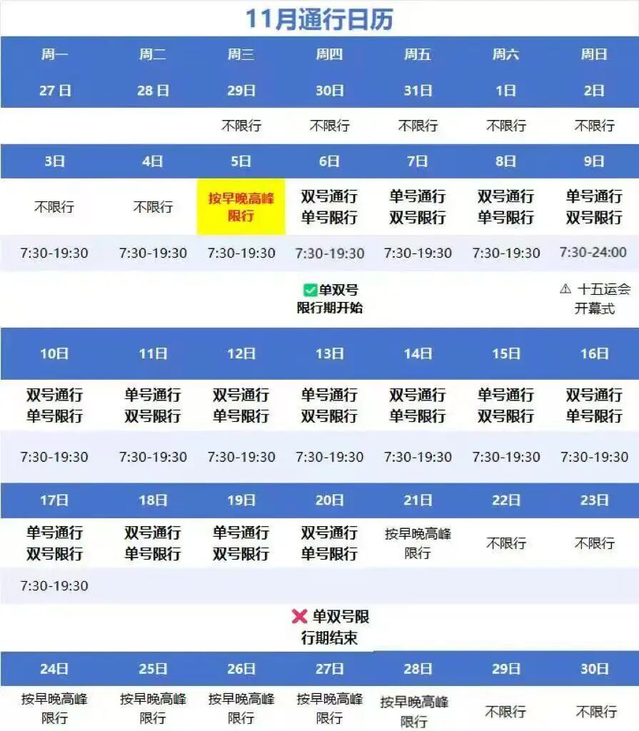 11月6-20号限行时间